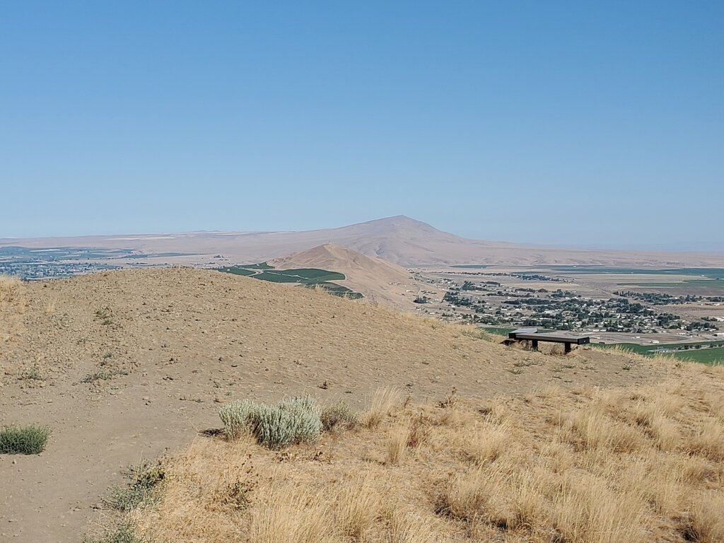 Jump off Joe is a butte in the Horse Heaven Hills south of Kennewick in the U.S. state of Washington7https://en.wikipedia.org/wiki/Jump_Off_Joe_(Washington). It rises above the Tri-Cities and is visible throughout much of the region, including in parts of Umatilla and Morrow Counties in Oregon to the south. A gravel road approaches the summit from the south up a steep incline. On a clear day, visitors to the summit can see Mount Hood, Mount Adams and Mount Rainier